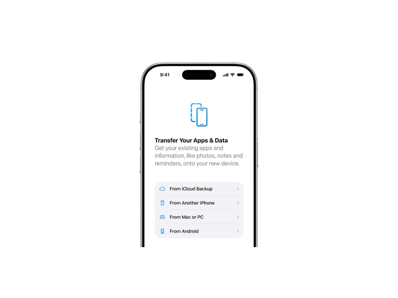 Apple 官方的邏輯是:先確定舊 iPhone 有 iCloud 備份,再到新機「App與資料」畫面選 從 iCloud 備份回復。 Apple 支援