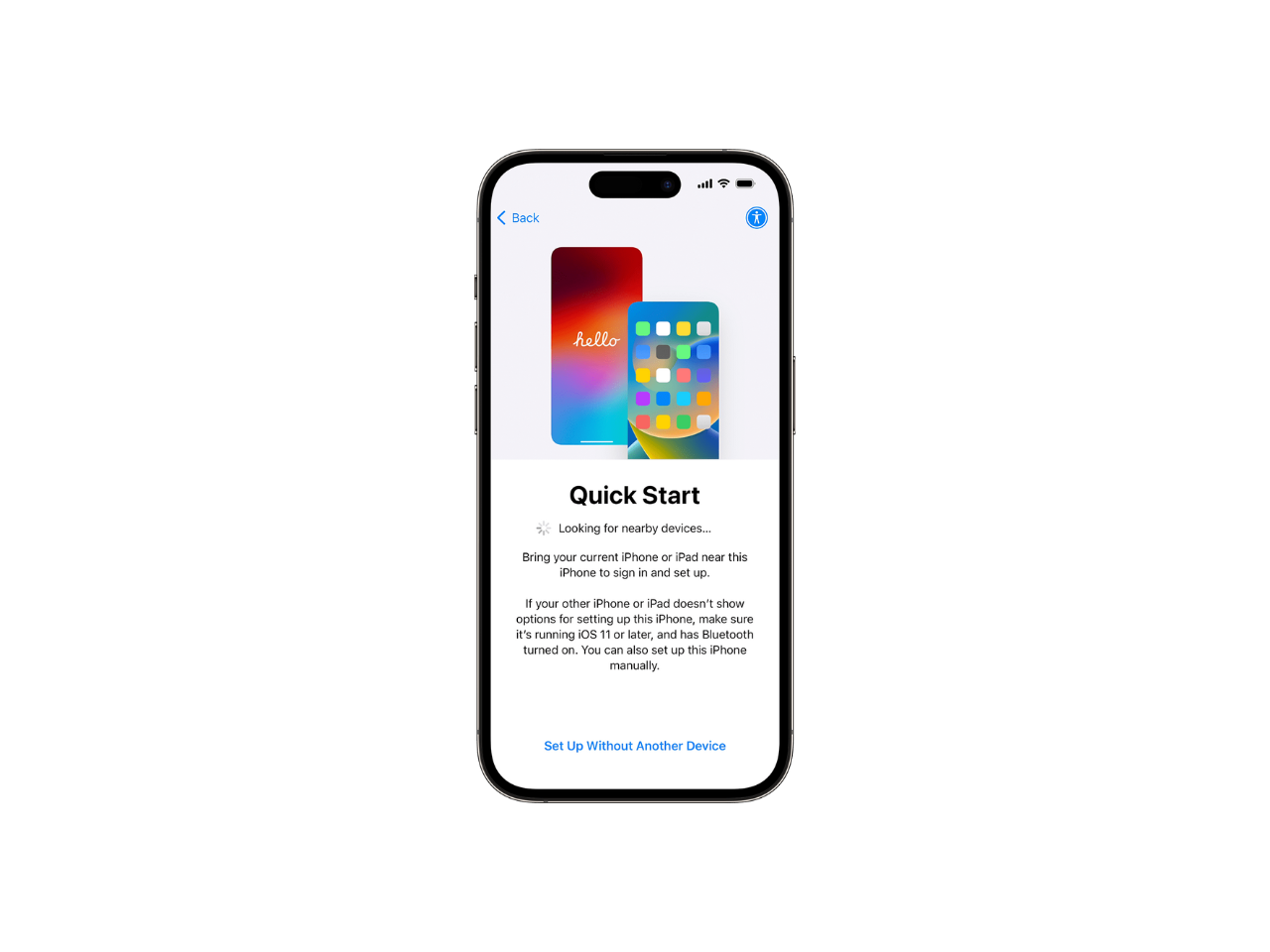 Apple 的 快速開始 Quick Start 流程,核心條件是:舊機要連 Wi-Fi、藍牙開著,新機開機放旁邊。 Apple 支援